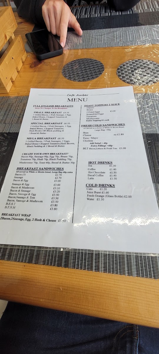Cafe Amber specializes in a delightful range of breakfast options that tantalize the taste buds. Imagine sinking your teeth into perfectly toasted bread topped with your choice of Beans, Cheese, Fried Eggs, or Scrambled Eggs—each dish priced at a pocket-friendly £3.30. For those looking for something heartier, the breakfast sandwiches are a must-try. Treat yourself to a classic Bacon Sandwich for just £3, or indulge in the ultimate breakfast experience with the B.E.S.T sandwich, layered with bacon, egg, sausage, and tomato, all for only £4.10. The fresh ingredients and generous portions ensure each bite is bursting with flavor.